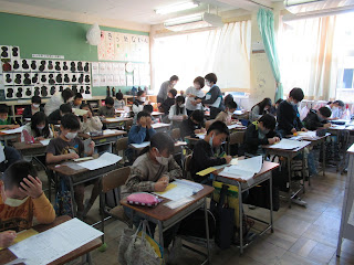 1クラスを3つのグループに分けて行っていましたが、合奏の発表でもあり、聞く態度の練習でもありました。