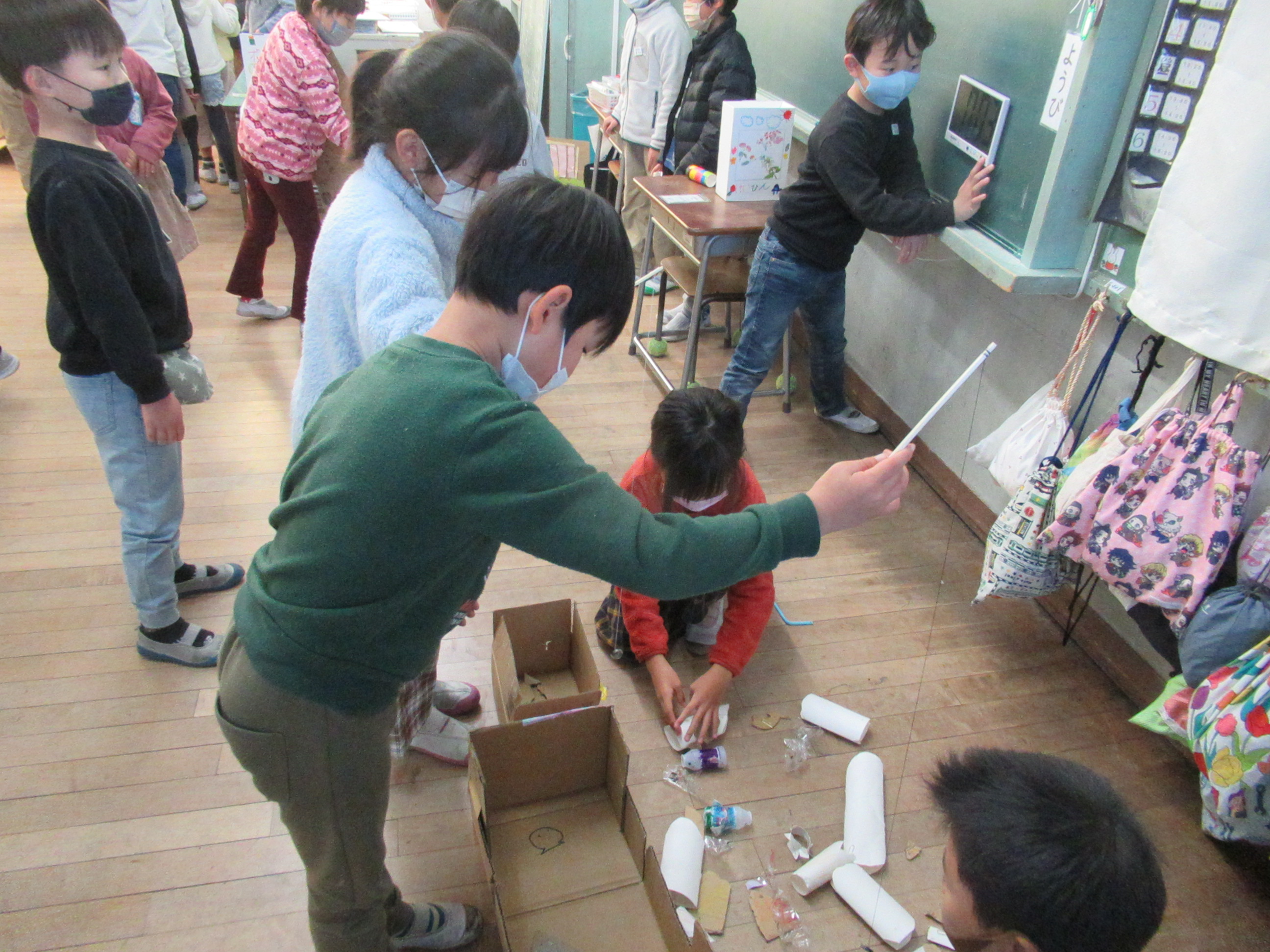 今日5時間目に、2年生が準備していたおもちゃランドで1年生が楽しみました。 的あて、ゴム中、うちわであおいで車のレースカー、巨大紙相撲に磁石を利用したさかな釣りなど、子どもたちが楽しめるたくさんのものがありました。 「生活科」で学んだことを利用して、子どもたちは様々な工夫をしていて、子どもたちの発想に驚かされます。 商品の手裏剣もとってもきれいにできていました。 2年生のみんな、ありがとう! そして、1年生の皆さん。来年は入学してくる新入生に皆さんが楽しんだ以上に楽しませてあげてくださいね。